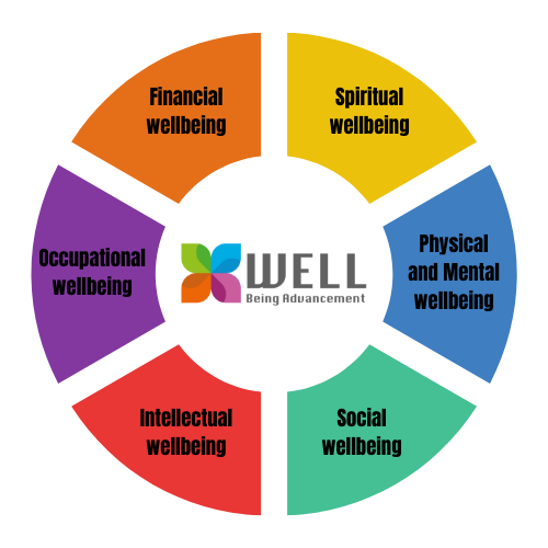 We embrace and promote a comprehensive perspective on wellbeing, encompassing five vital dimensions: